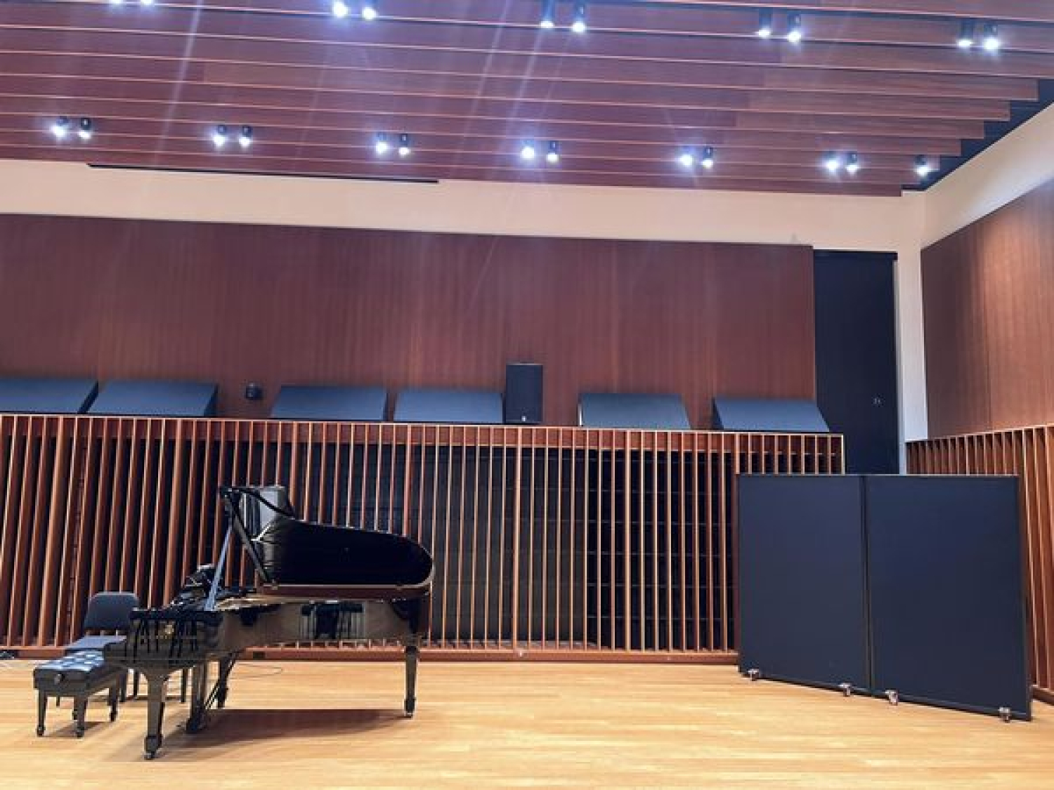 Practicing in the hall for my concert tomorrow at Concordia University. It has the biggest speakers I have seen and they sound awesome, great for electronics. Looking forward!