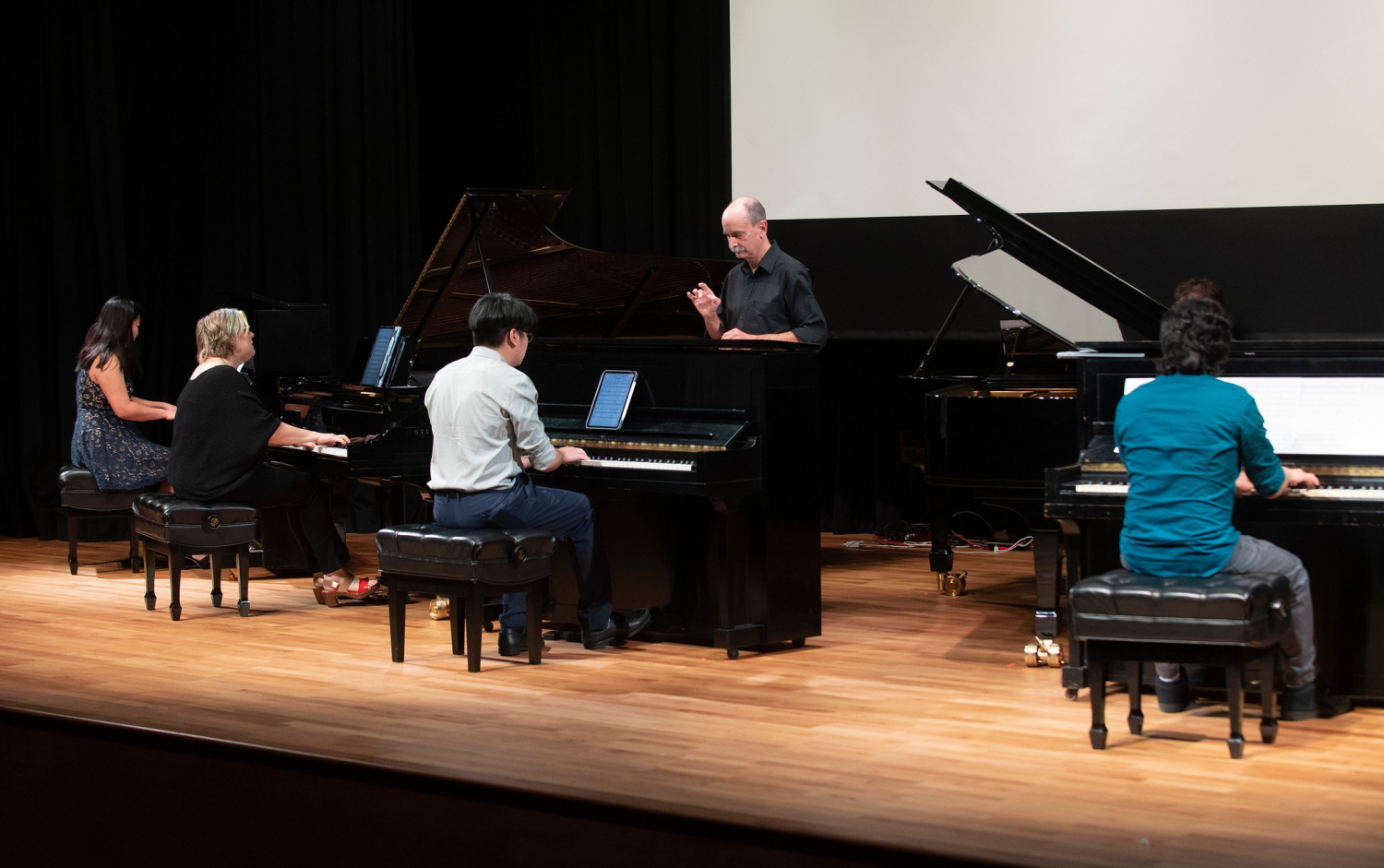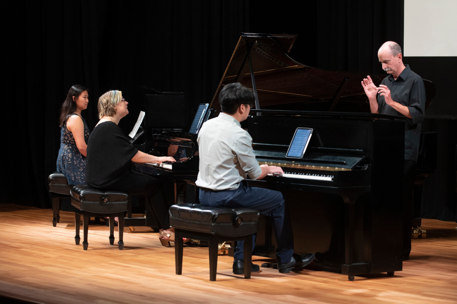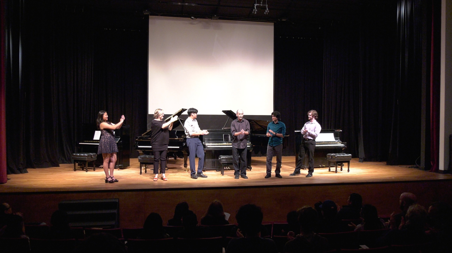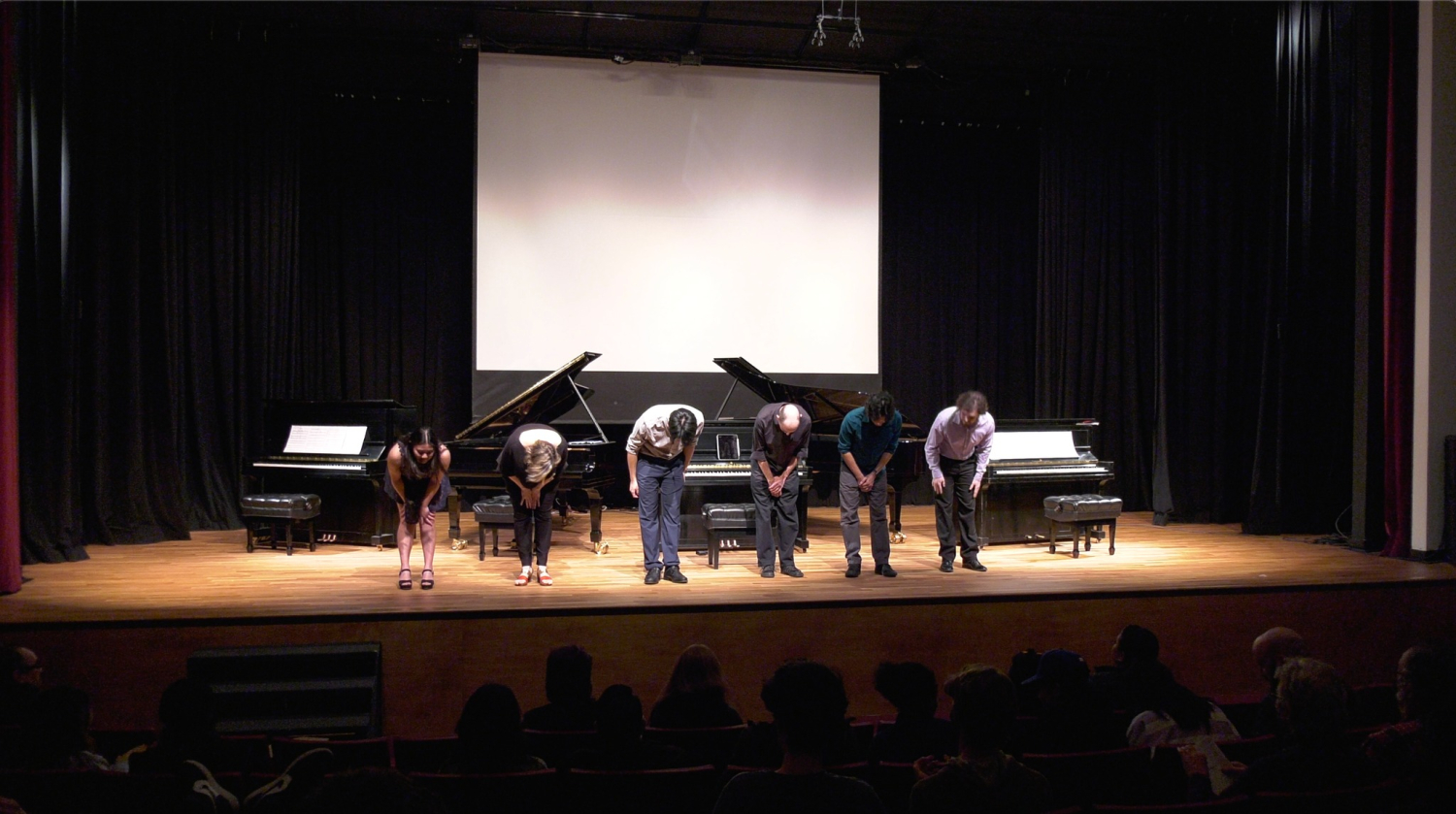 Thank you so much to everyone who came to the concert and supported Ukraine! Here are the photos from this unforgettable event. This concert included 3 programs, it was very long, and I am grateful for such an enthusiastic and supportive audience who stayed until 10:30 pm to hear this huge program featuring 5 West Coast premieres by Lewis Spratlan, Chris Cerrone, Tom Flaherty, Oliver Dubon, and Evan Ware, the World Premiere of Bad Attitude for 5 pianos by Bill Alves, performed with my Cal Poly Pomona Piano Ensemble, and the Variations on a Ukrainian Lullaby for voice, toy piano, and toy percussion by Dave Kopplin.