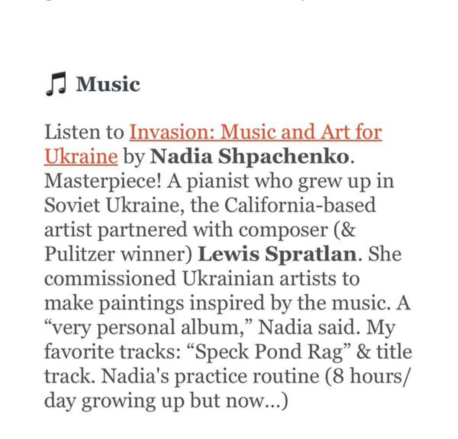 Very grateful to Kabir Sehgal for calling my album Invasion: Music and Art for Ukraine a "Masterpiece" and for featuring me on his blog!